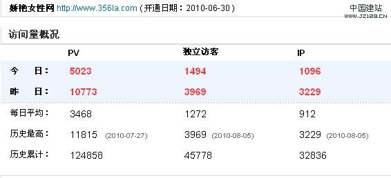 嬌艷女性網(wǎng)做了1個(gè)多月,現(xiàn)在IP已經(jīng)3000多了,這個(gè)行業(yè),3000多IP已經(jīng)是很不錯(cuò)的了,呵呵,就說到這里了吧,可能文章有不通順和錯(cuò)別字,希望大家轉(zhuǎn)載時(shí)幫忙修改一下。